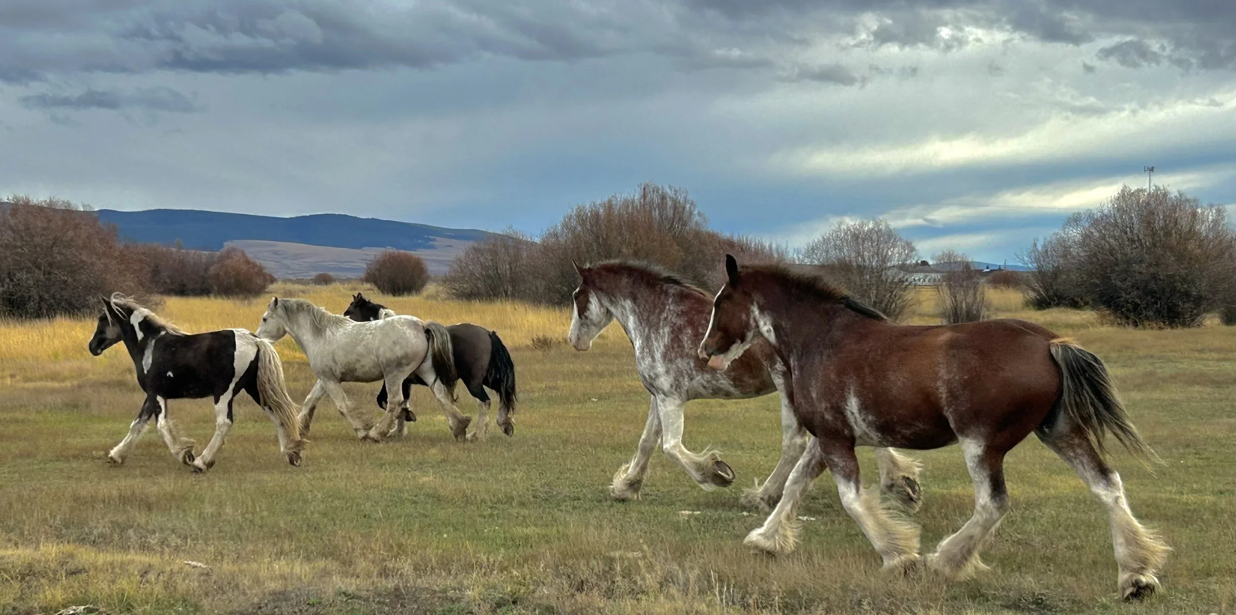 Big Hole Basin Equine uses Clydesdales, Draft Ponies, and saddle horses of various breeds for equine facilitated activities. We are also seen at breed exhibitions, life event celebrations, and participating in cart/carriage activities.